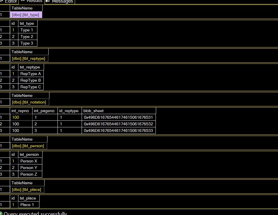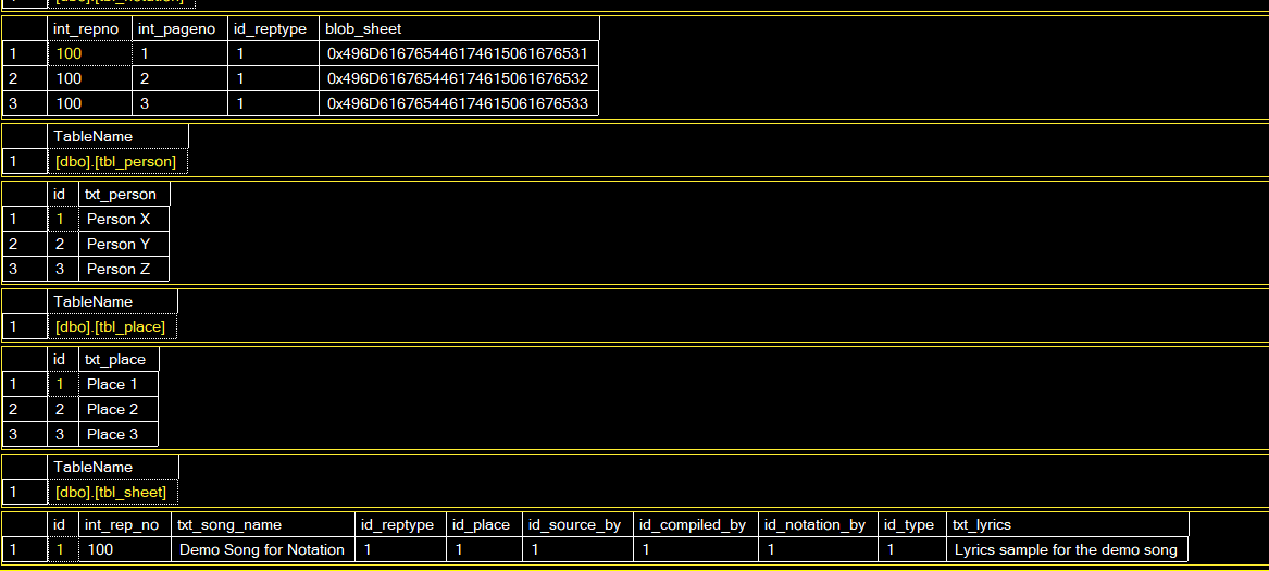 Hello, I'm trying to select one record from tbl_sheet and multiple blob images from tbl_notation. I'm using SQLite/Pascal. Here's my database structure: